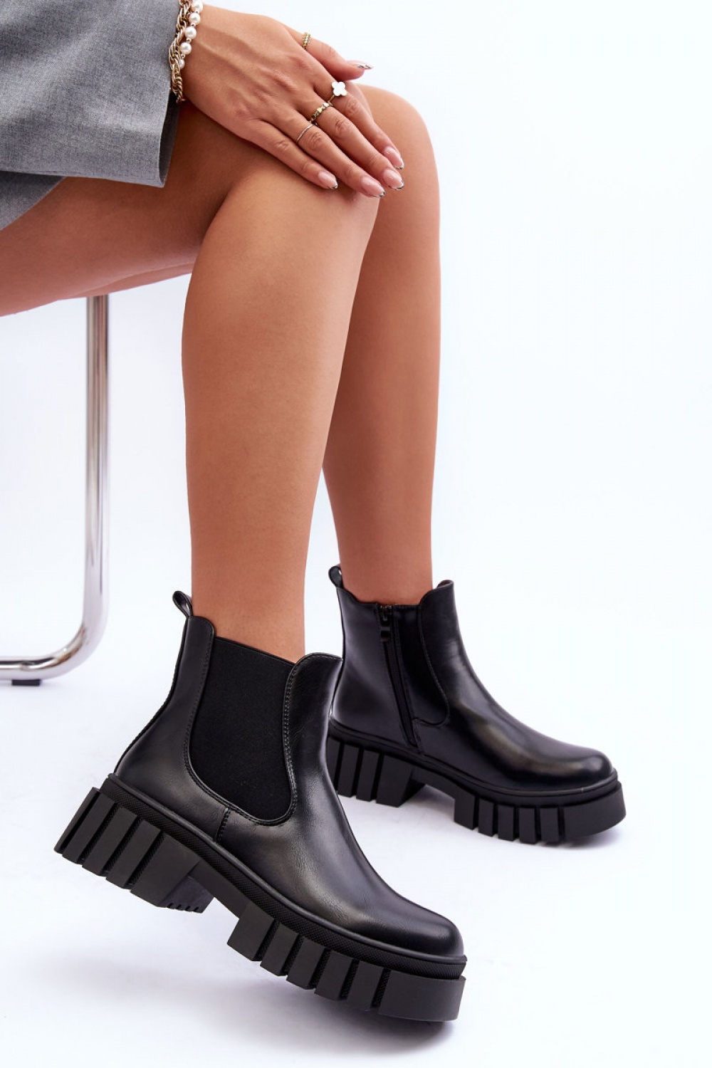 Γυναικείες χαμηλές μπότες από βιολογικό δέρμα. Κλείνουν με φερμουάρ στο εσωτερικό του παπουτσιού. Αυτό το μοντέλο διαθέτει ένα ελαστικό ένθετο στο επάνω μέρος. Τοποθετείται πάνω σε μια τεράστια πλατφόρμα και ένα επίπεδο τακούνι. Φροντίστε να δείτε ολόκληρη την προσφορά μας σε γυναικείες μπότες.