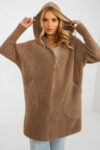 Γυναικείο μακρυμάνικο παλτό με κλείσιμο με πρέσα. Το παλτό έχει τσέπες. Το παλτό δεν έχει φόδρα.