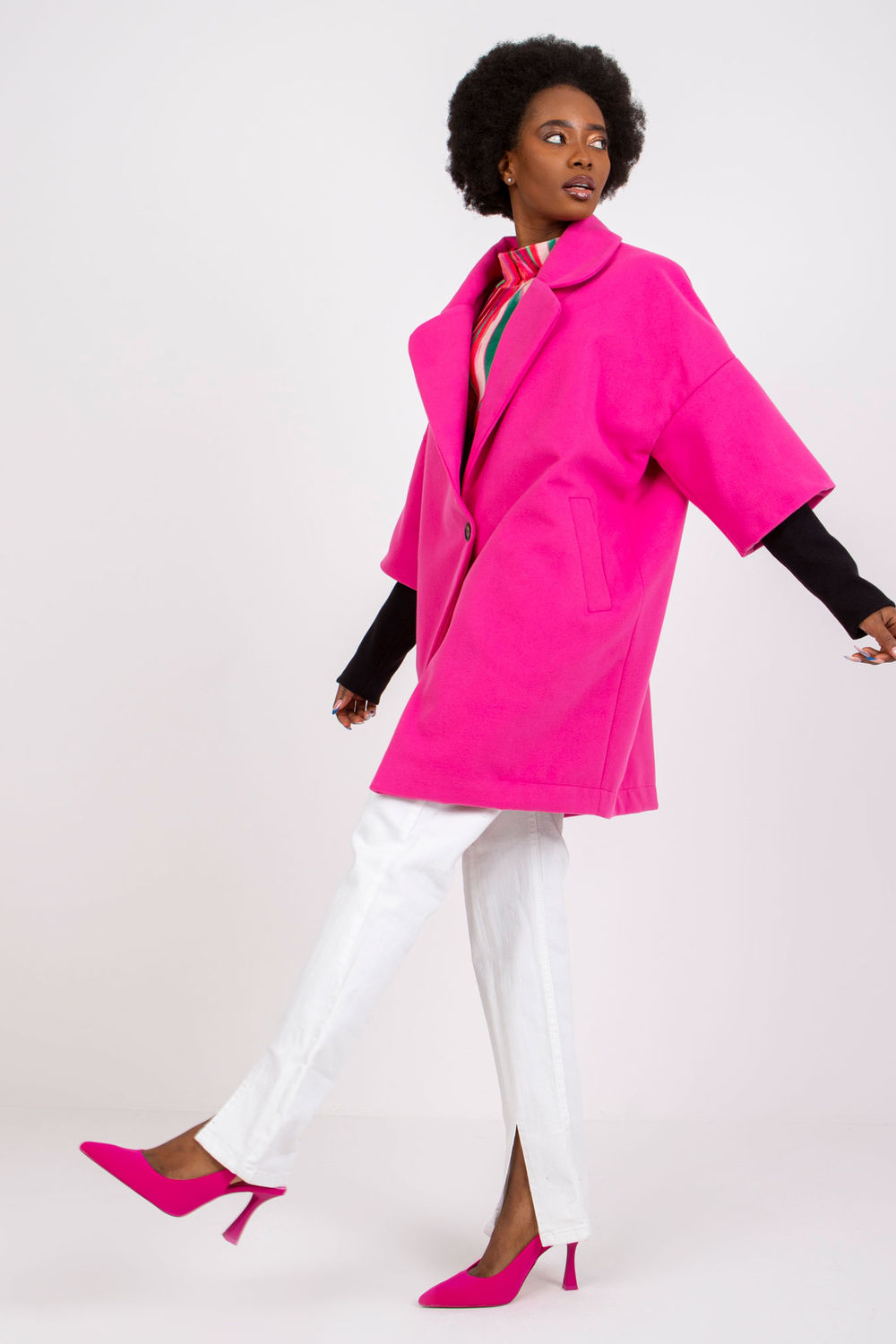 Γυναικείο παλτό σε φαρδιά γραμμή με κλείσιμο με κουμπιά και επένδυση. Τσέπες στα πλάγια.