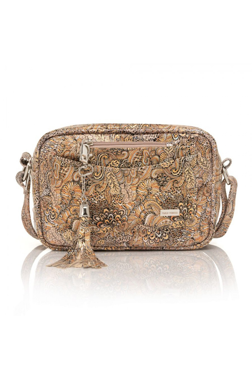 Κομψή γυναικεία τσάντα από φυσικό δέρμα με πανέμορφο μωσαϊκό μοτίβο…. Ακούγεται δελεαστικό, έτσι δεν είναι; Αν, όπως εμείς, αγαπάτε τα εκφραστικά αξεσουάρ, τότε το μοντέλο που παρουσιάζεται θα είναι ιδανικό για εσάς. Το κομψό φλοράλ μοτίβο σε αποχρώσεις του χρυσού είναι μια πραγματική απόλαυση για τους λάτρεις των κομψών αξεσουάρ. Το τελευταίο μοντέλο της τσάντας του Paolo Peruzzi είναι πρακτικό και λειτουργικό, εκτός από τον εκπληκτικό σχεδιασμό και τη στιβαρή κατασκευή του. Η τσάντα διαθέτει ένα κύριο διαμέρισμα με φερμουάρ, καθώς και μια αποσπώμενη θήκη, η οποία είναι ιδανική για την αποθήκευση των απαραίτητων γυναικείων ειδών. Ο ρυθμιζόμενος ιμάντας μήκους 135 εκατοστών, κατασκευασμένος από δέρμα κορυφαίας ποιότητας, μπορεί να προσαρμοστεί εύκολα στις ανάγκες σας. Η δερμάτινη τσάντα θα χωρέσει αναμφίβολα όλα τα απαραίτητα αξεσουάρ και τα θηλυκά σας σκεύη. Η καλαίσθητη τσάντα ώμου θα αποτελέσει εξαιρετικό συμπλήρωμα για πολλά σύνολα, ανεξάρτητα από την εποχή. Απολαύστε την προσεγμένη κατασκευή και το ασυνήθιστο στυλ και είμαστε σίγουροι ότι η τσάντα Z-44-R θα γίνει η αγαπημένη σας για τα επόμενα χρόνια.