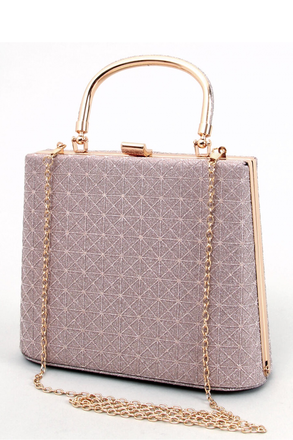 Επίσημη γυναικεία τσάντα – μπαούλο. Είναι κατασκευασμένη από πανέμορφα λαμπερό ύφασμα. Η τσάντα μπορεί να μεταφερθεί σε ένα καλαίσθητο χερούλι ή σε μια λεπτή αλυσίδα. Κλείνει με ένα κομψό κούμπωμα. Ιδανική για ειδικές περιστάσεις. Στο εσωτερικό της υπάρχει ένα διαμέρισμα, χωρίς θήκες.