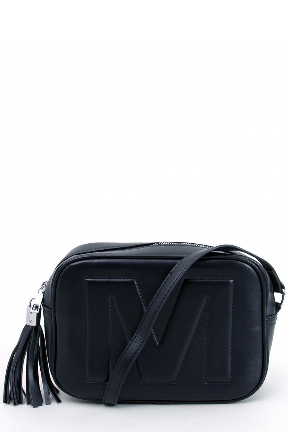 Γυναικεία τσάντα ταχυδρομείου με φούντα. Πρόκειται για ένα κλασικό μοντέλο σε ασορτί μαύρο χρώμα. Κλείνει με φερμουάρ και στο εσωτερικό της υπάρχει μία θήκη με καρτέλα και μία τσέπη με φερμουάρ. Επιπλέον, στο πίσω μέρος της τσάντας υπάρχει επίσης μια μικρή ολισθαίνουσα τσέπη. Εξωτερικό υλικό ? οικολογικό δέρμα.