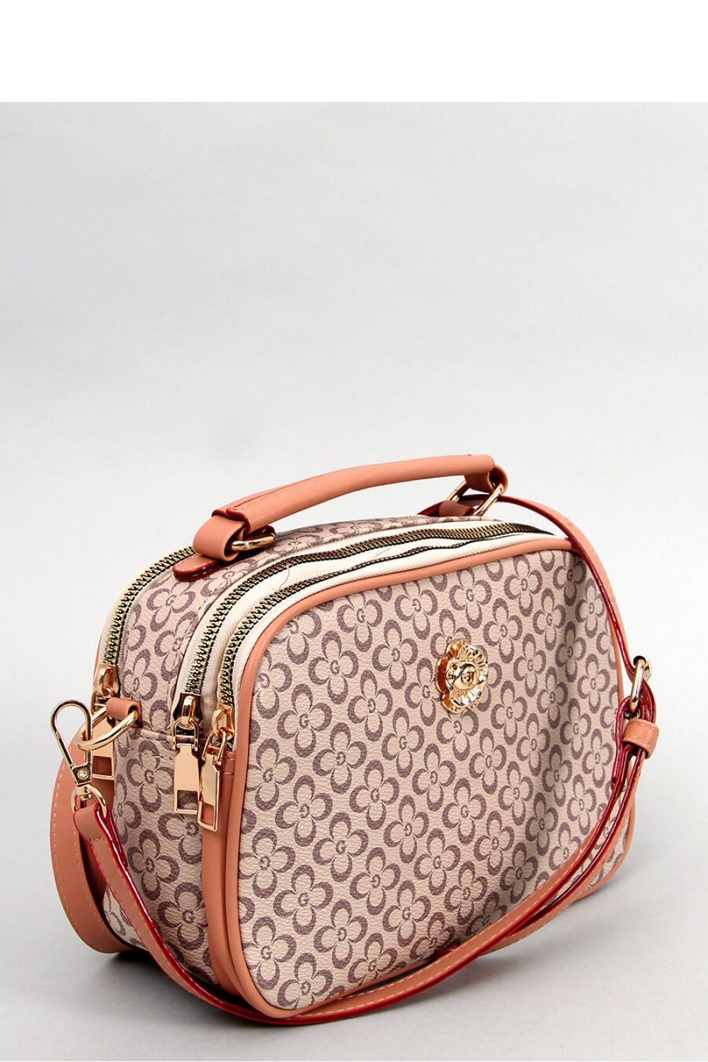 Μια κομψή γυναικεία τσάντα ? σεντούκι. Το διακριτικό μοτίβο και τα αξεσουάρ σε χρυσό χρώμα είναι βέβαιο ότι θα τραβήξουν τα βλέμματα : ) Διαθέτει μακρύ, αποσπώμενο και ρυθμιζόμενο λουρί. Η τσάντα διαθέτει τρεις ξεχωριστές θήκες με φερμουάρ και μια επιπλέον τσέπη με φερμουάρ στο πίσω μέρος. Εξωτερικό υλικό ? οικολογικό δέρμα.