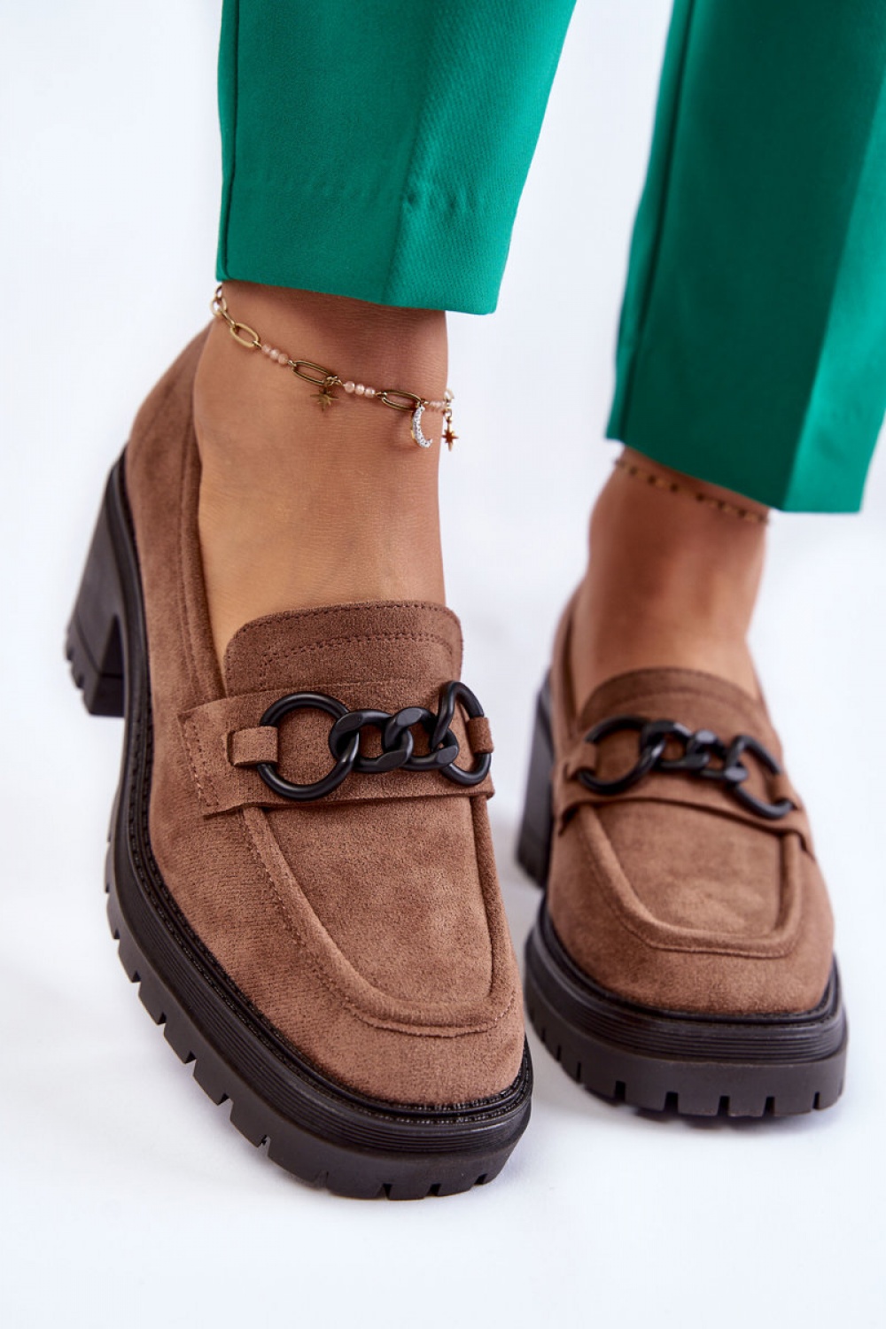 Ιδανικά γυναικεία παπούτσια με σταθερό τακούνι σε μορφή χαμηλού στύλου. Κατασκευασμένο από υψηλής ποιότητας σουέτ οικολογικό δέρμα. Χαρακτηριστική διακόσμηση με τη μορφή αλυσίδας στο μπροστινό μέρος. Η σόλα με αυλακώσεις μονώνει τέλεια από το ανώμαλο έδαφος. Ο άνετος πάτος είναι κατασκευασμένος από φυσικό δέρμα. Ένα εξαιρετικό μοντέλο για πολλά στυλ! Άνετο και μοντέρνο ταυτόχρονα. Ένα must-have!