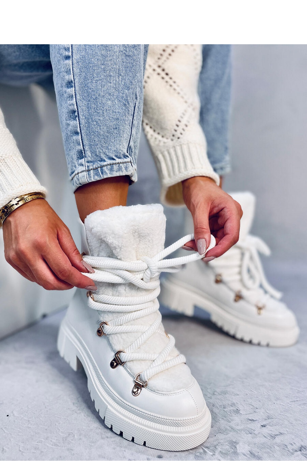 Γυναικείες μπότες με κορδόνια ? μπότες χιονιού με χοντρή σόλα. Το κόψιμό τους αναδεικνύεται από το πρωτότυπο δέσιμο όπως στις μπότες trekking και μια εντυπωσιακή και ζεστή προβιά. Μην πειστείτε άλλο και παραγγείλτε τα σήμερα και δεν θα το μετανιώσετε : ) Είναι κατασκευασμένες από οικολογικό σουέτ (λευκό χρώμα – οικολογικό δέρμα) και εσωτερικά είναι επενδεδυμένες με γούνα.