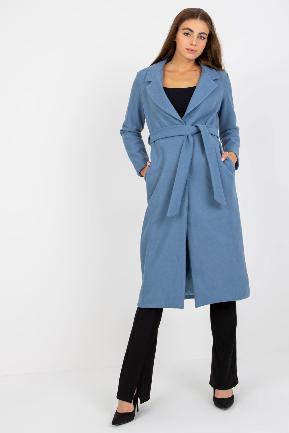 Γυναικείο παλτό με μακριά μανίκια και τσέπες. Το παλτό είναι πλήρως φοδραρισμένο και συνοδεύεται από ζώνη με δέσιμο.