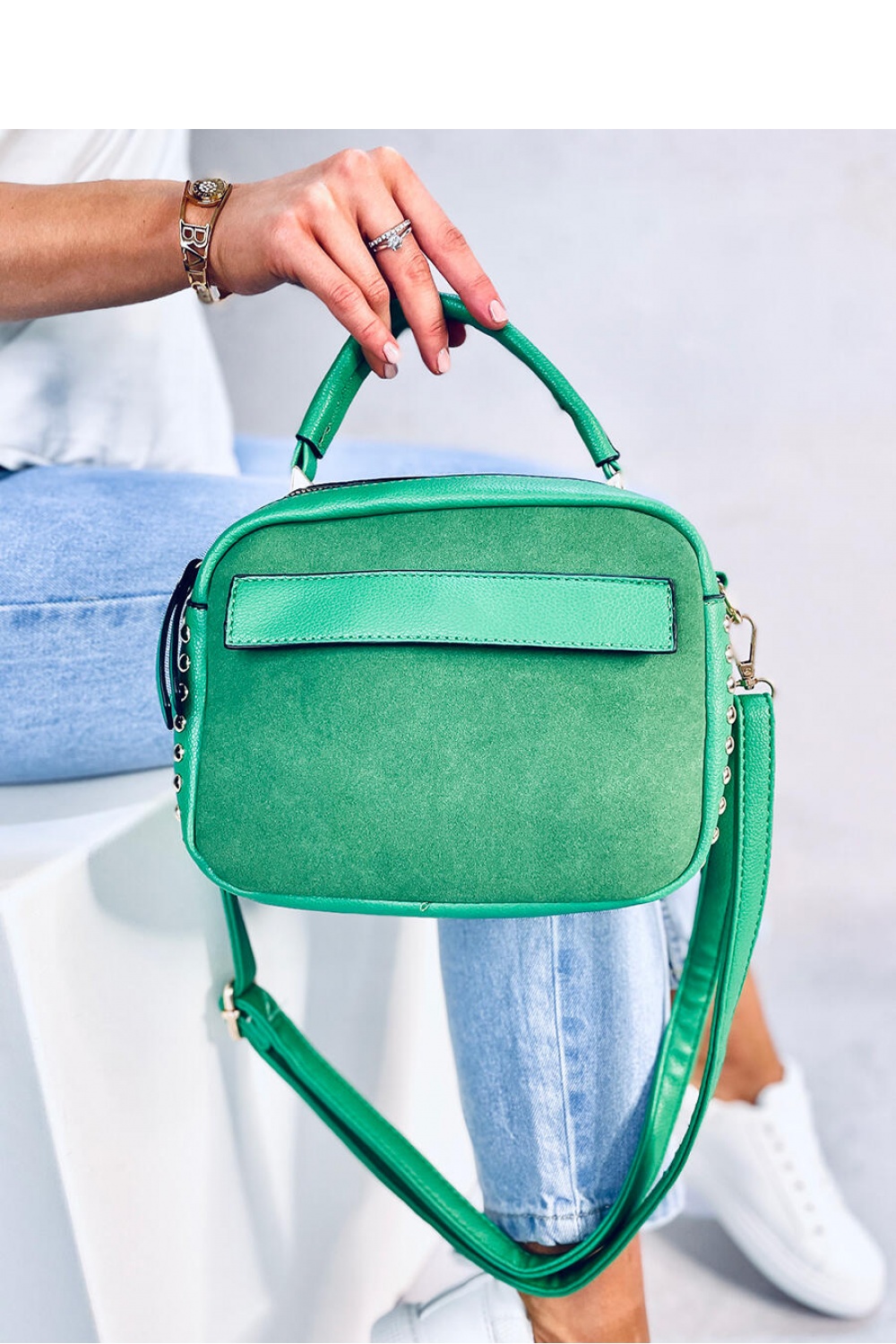 Γυναικεία τσάντα – τσάντα με καρφιά. Μπορεί να μεταφερθεί με δύο τρόπους ? στο χέρι σαν χαρτοφύλακα ή στον ώμο με μακρύ ρυθμιζόμενο λουρί (αποσπώμενο). Υπάρχει μια θήκη με φερμουάρ στο μπροστινό μέρος. Η τσάντα είναι κατασκευασμένη από συνδυασμό οικολογικού δέρματος με επένδυση και ματ δέρματος, γεγονός που της προσδίδει μια αντισυμβατική εμφάνιση. Κλείνει με φερμουάρ και στο εσωτερικό της υπάρχει ένα διαμέρισμα με μια μικρή τσέπη με φερμουάρ και μια καρτέλα.